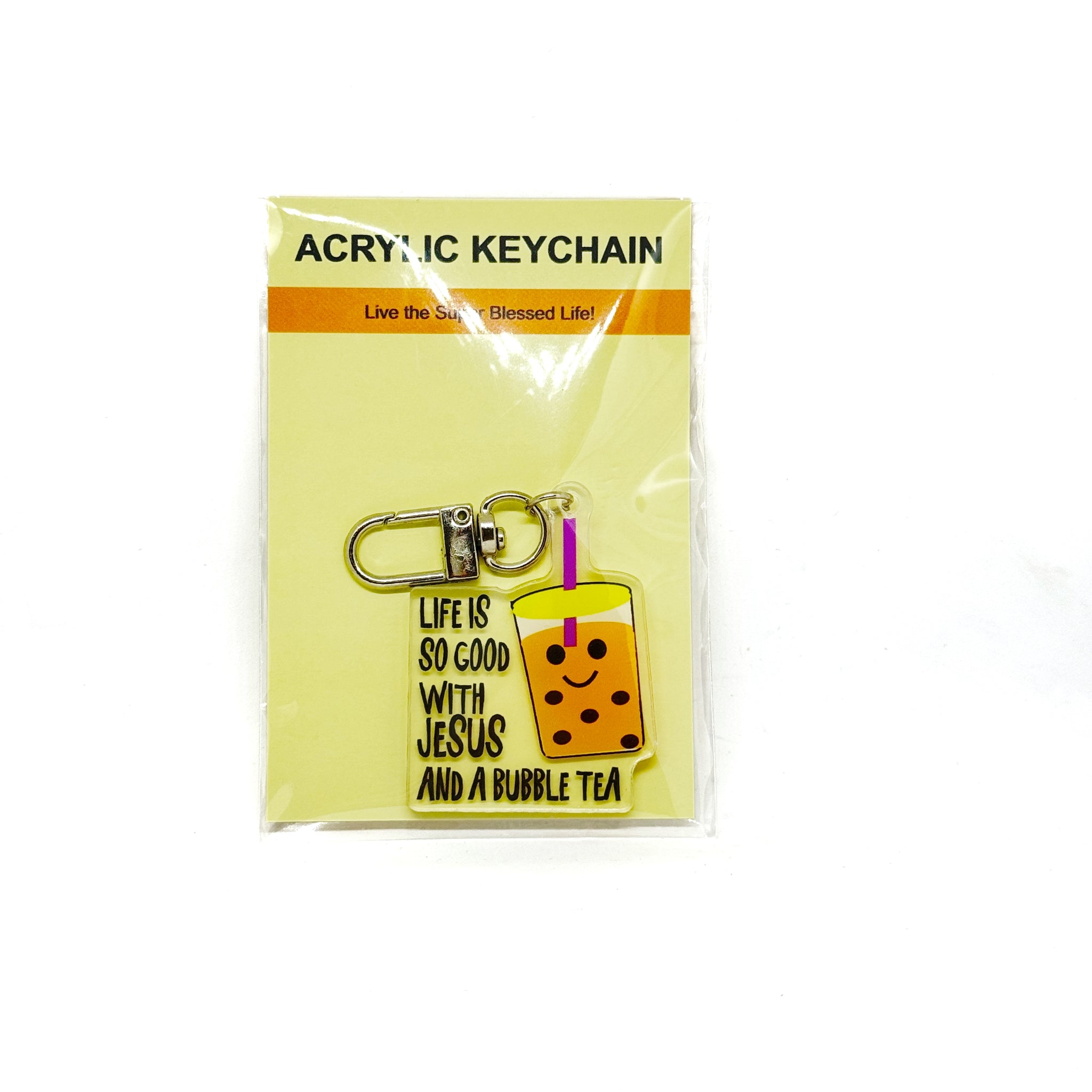 Life is so good with Jesus and a bubble tea Keychain Charm